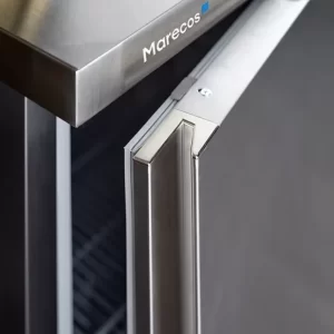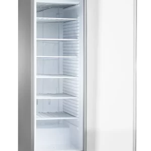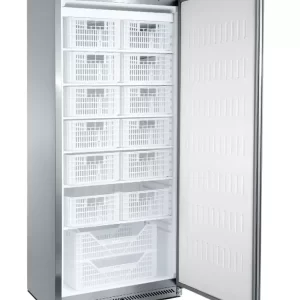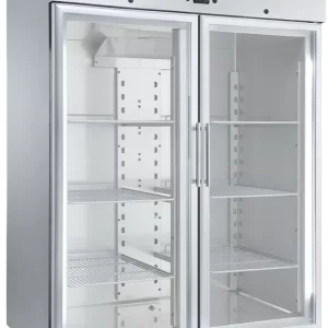 Equipamento Profissional desenvolvido para uma conjugação perfeita entre design e funcionalidade, de acordo com as exigências dos chefs de alta cozinha nos mais diversos ambientes. Com interior e exterior em aço inox AISI 304 está garantida uma proteção efetiva contra a corrosão. Os 80 mm de isolamento em Poliuretano de alta densidade, frio ventilado com sistema monobloco e descongelação automática por gás quente, garantem a uniformidade da temperatura interior e a rápida recuperação da temperatura em caso de abertura de porta. A porta de vidro frameless com um ergonómico puxador e iluminação led no interior, permitem uma visualização e exposição elegante do produto no interior. Dotado de 3 prateleiras em aço plastificado de serie em sistema de calha duplo, que permite a utilização em simultâneo da prateleira e do container GN 2/1. De serie dispõe ainda de fechadura, 4 rodas giratórias (2 com travão), porta com retorno automático à posição de fechada e comando frontal elevatório para fácil acesso aos componentes.