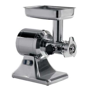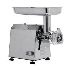 Grupo picador completamente desmontável do corpo da máquina para uma limpeza eficiente, prato de recolha e alimentador em aço inoxidável.